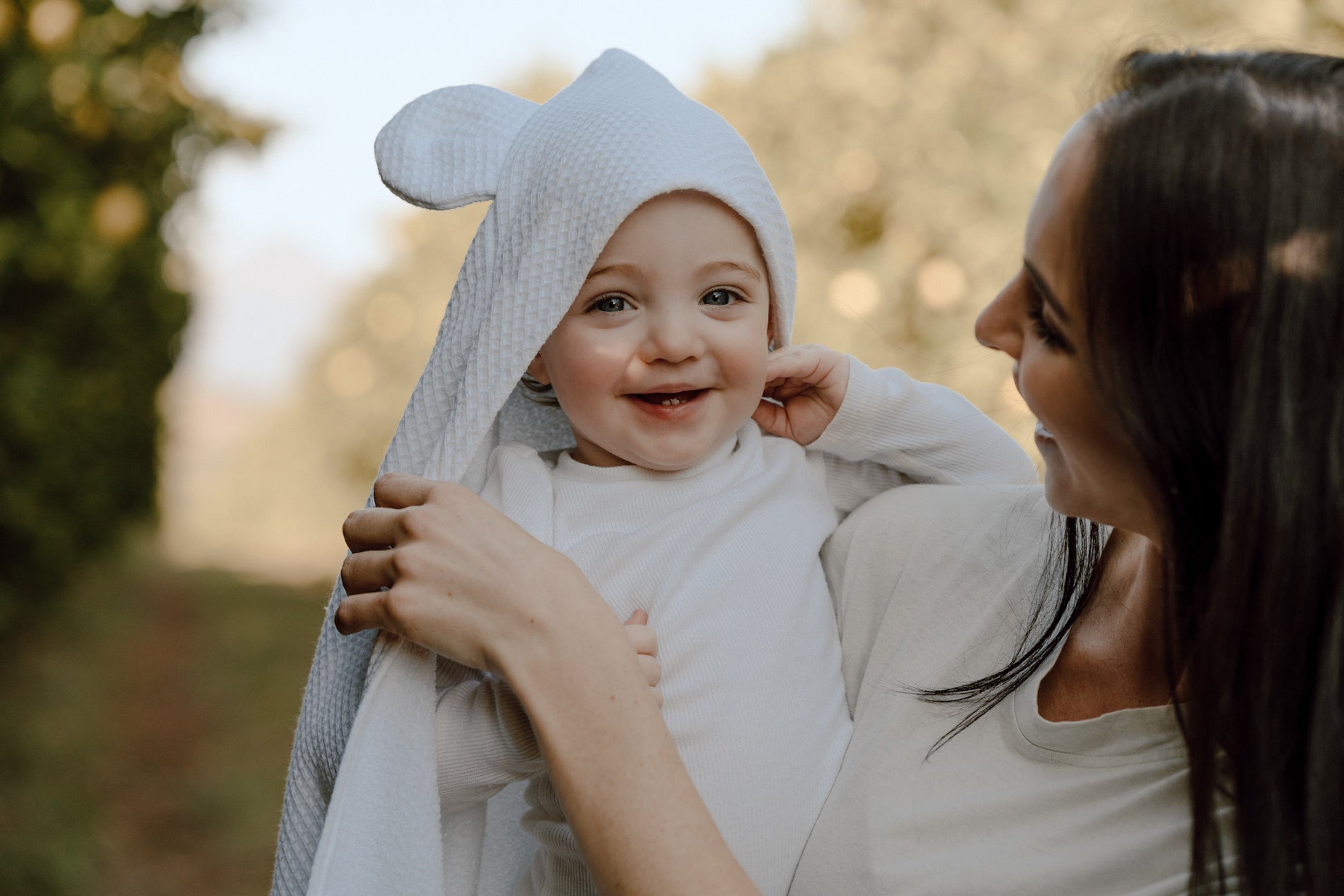 Our waffle weave towel has a waffle weave outer detail and soft inner toweling for extra absorption and comfort for your little one.